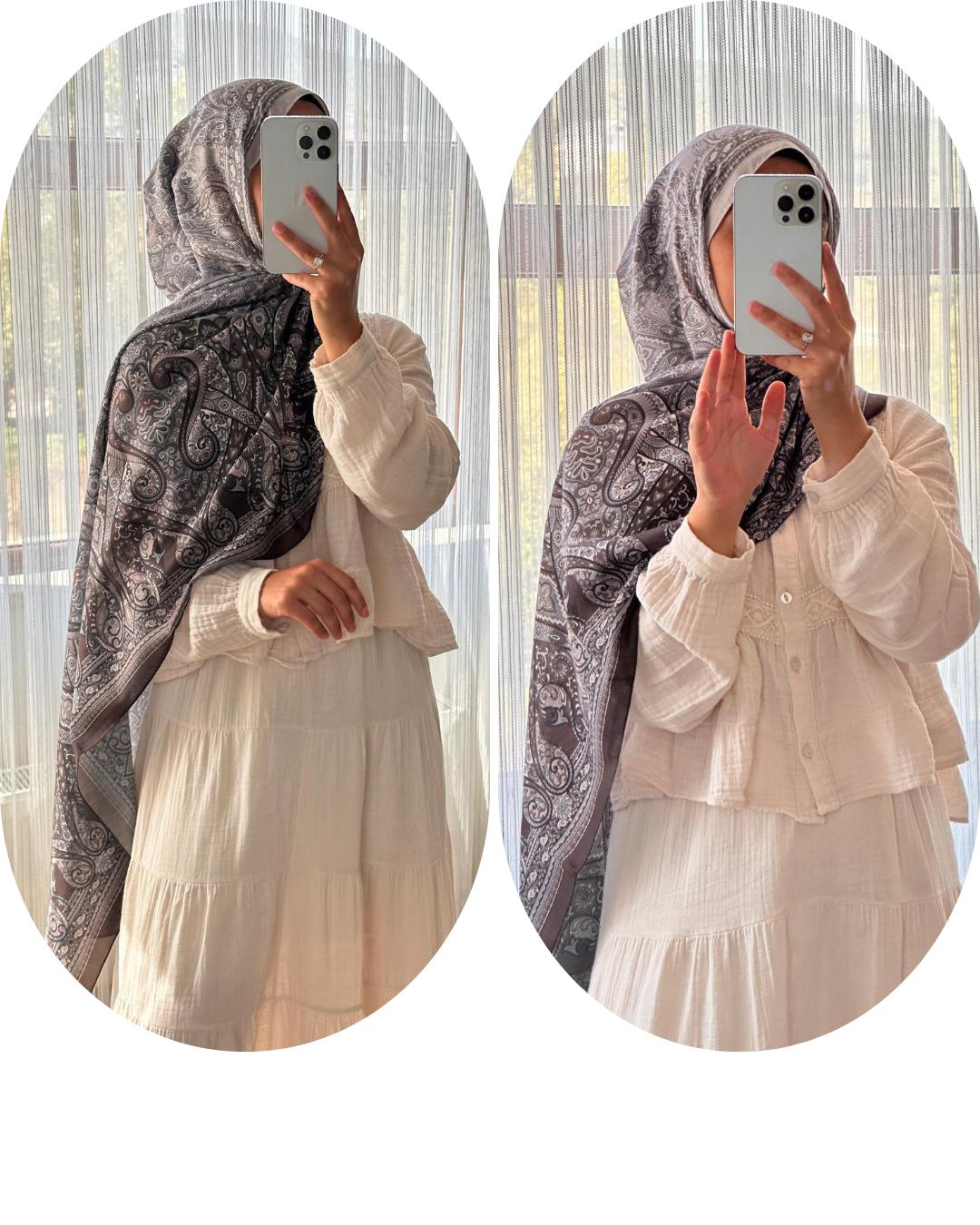 PAMUKLU PAİSLEY DESEN ÇİFT RENKLİ ŞAL-KAHVE