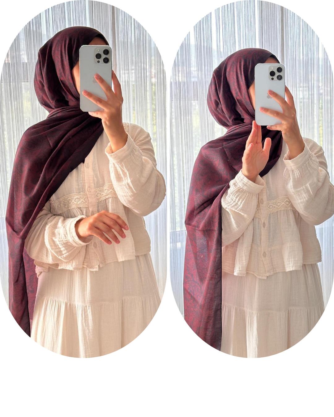 PAMUKLU VİNTAGE DESENLİ ŞAL -BORDO
