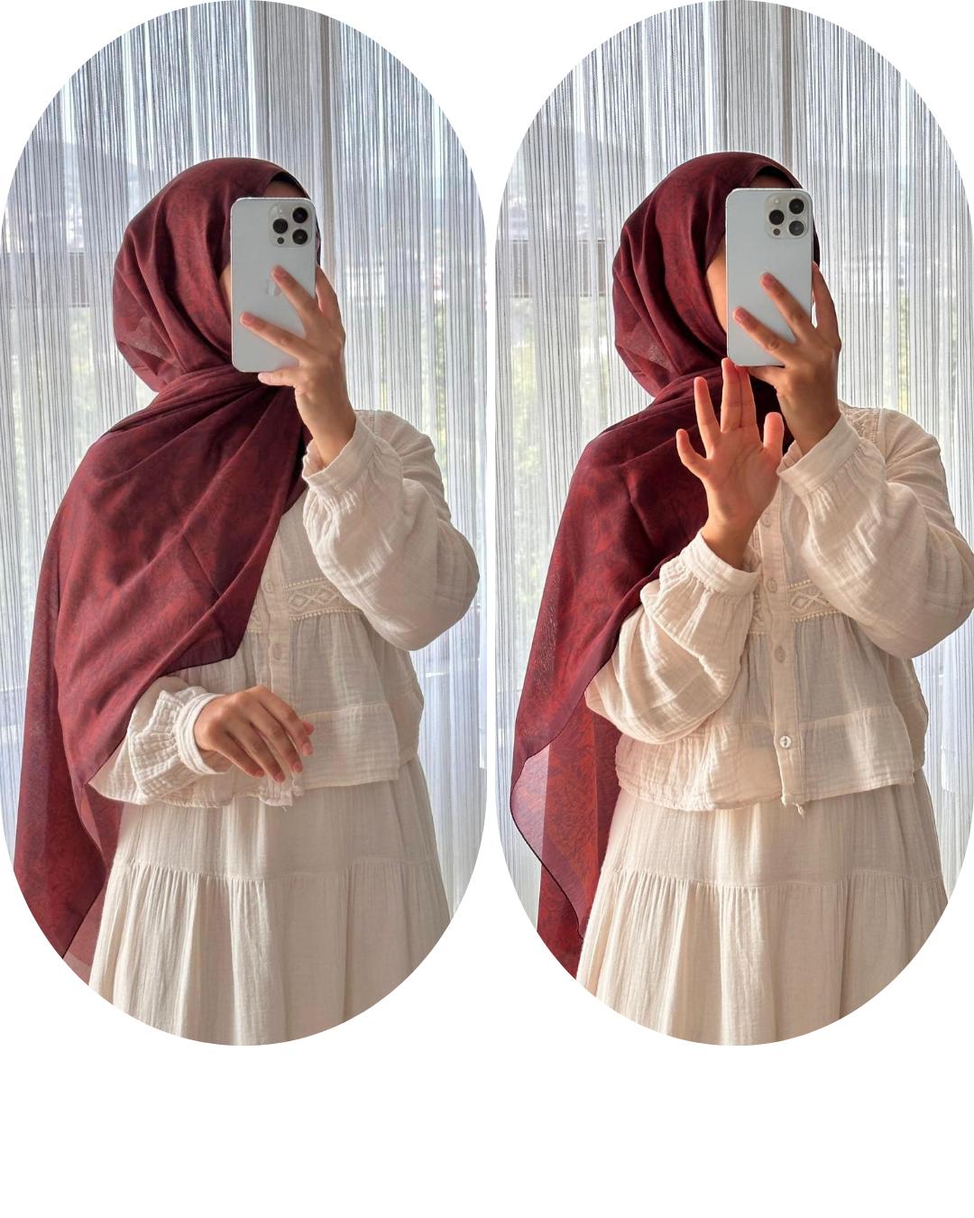 PAMUKLU VİNTAGE DESENLİ ŞAL -KIRMIZI