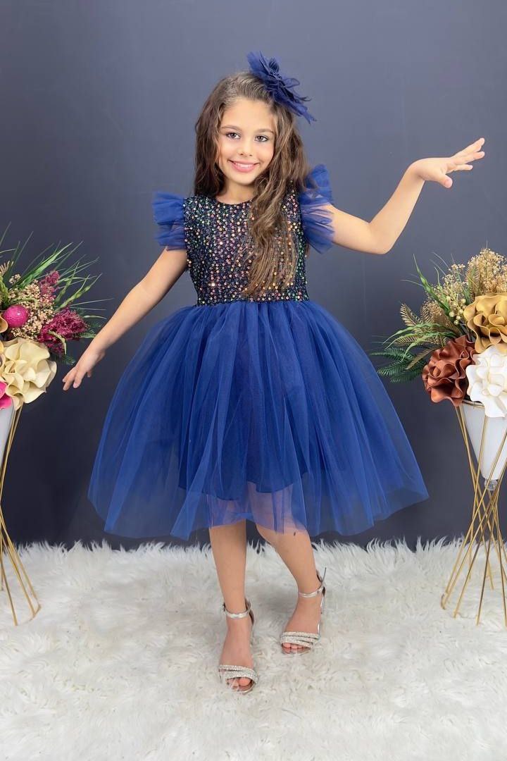 Pullu Tüllü Lacivert Çocuk Abiyesi ABY955